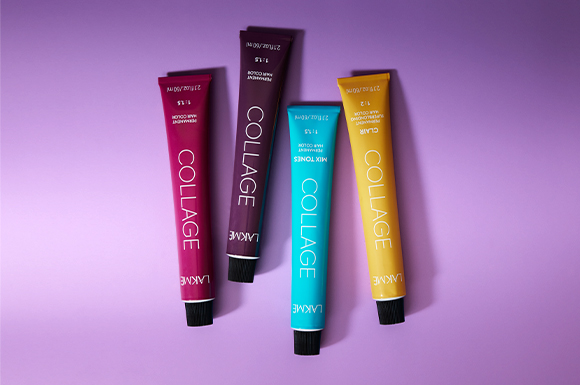 With 100 unique shades, the Collage range of permanent colour is formulated to enrich its colour power, with 100% grey coverage, exceptional shine, and maximum long-lasting colour. Vegan and dermatologically tested, Collage utilises OF5 high-performance technology, a molecule that delays oxidation of the hair dye, resulting in a more vibrant colour. The inclusion of an AQ-Save Complex in this new formula aids in moisture retention, for more hydrated hair. Collage base tones are recommended for grey hairs that are difficult to cover and require more intense pigmentation, while Collage Mixtones help intensify and neutralise highlights. Collage Clair can lighten hair 4 to 5 levels for luminous results and features a Fiber Architect technology to volumise while protecting the hair from breakage.